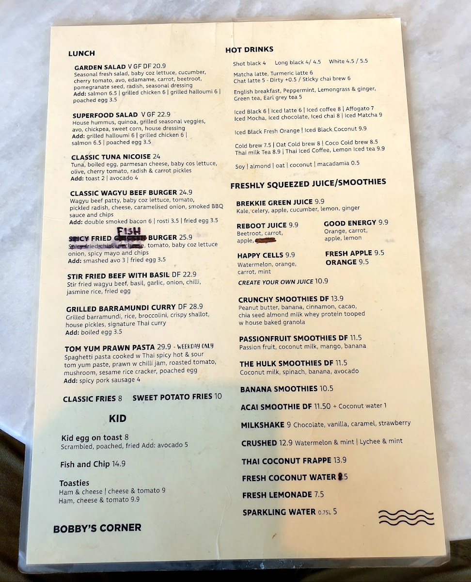 Culinary Highlights: The food at The Bondie Corner is a true highlight, with a menu that caters to various tastes. For the little ones, the Kids Menu features delightful options like Scrambled or Poached Egg on Toast for A$7 and the ever-popular Melted Cheese on Toast for A$5. For adults seeking a hearty lunch, the East Burger showcases a house-made beef patty topped with fresh lettuce, juicy tomatoes, and tangy pickles, all served with crispy chips for A$19.00.